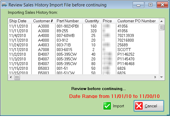 Quickly examine a customers entire ordering history including part numbers, quantities, prices paid, ship dates and customer PO numbers