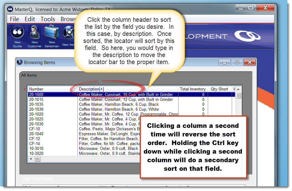 Sorting Browse TablesMost tables may be sorted, reverse sorted and compound sorted with just a few mouse clicks. ![]() |