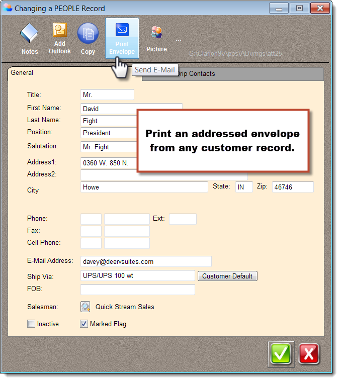 This is the quick start template we use to create mailing envelopes. Each user can have their own customized version if you wish. View the list of key word tokens here.